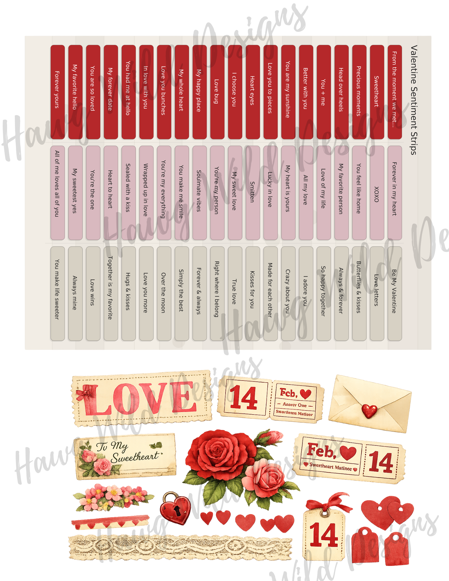 - Valentine sentiment strips (romantic phrases you can use as word labels)
